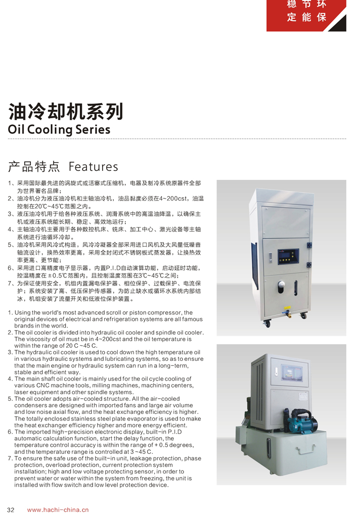 6、機(jī)組采用高精度電子顯示器,內(nèi)置P.I.D自動(dòng)演算功,延時(shí)啟動(dòng)功能。